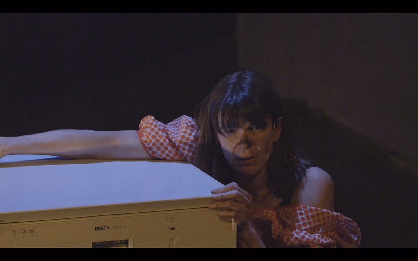 Eén personage, verbeeld door twee actrices, gaat in dialoog met haar ware zelf.